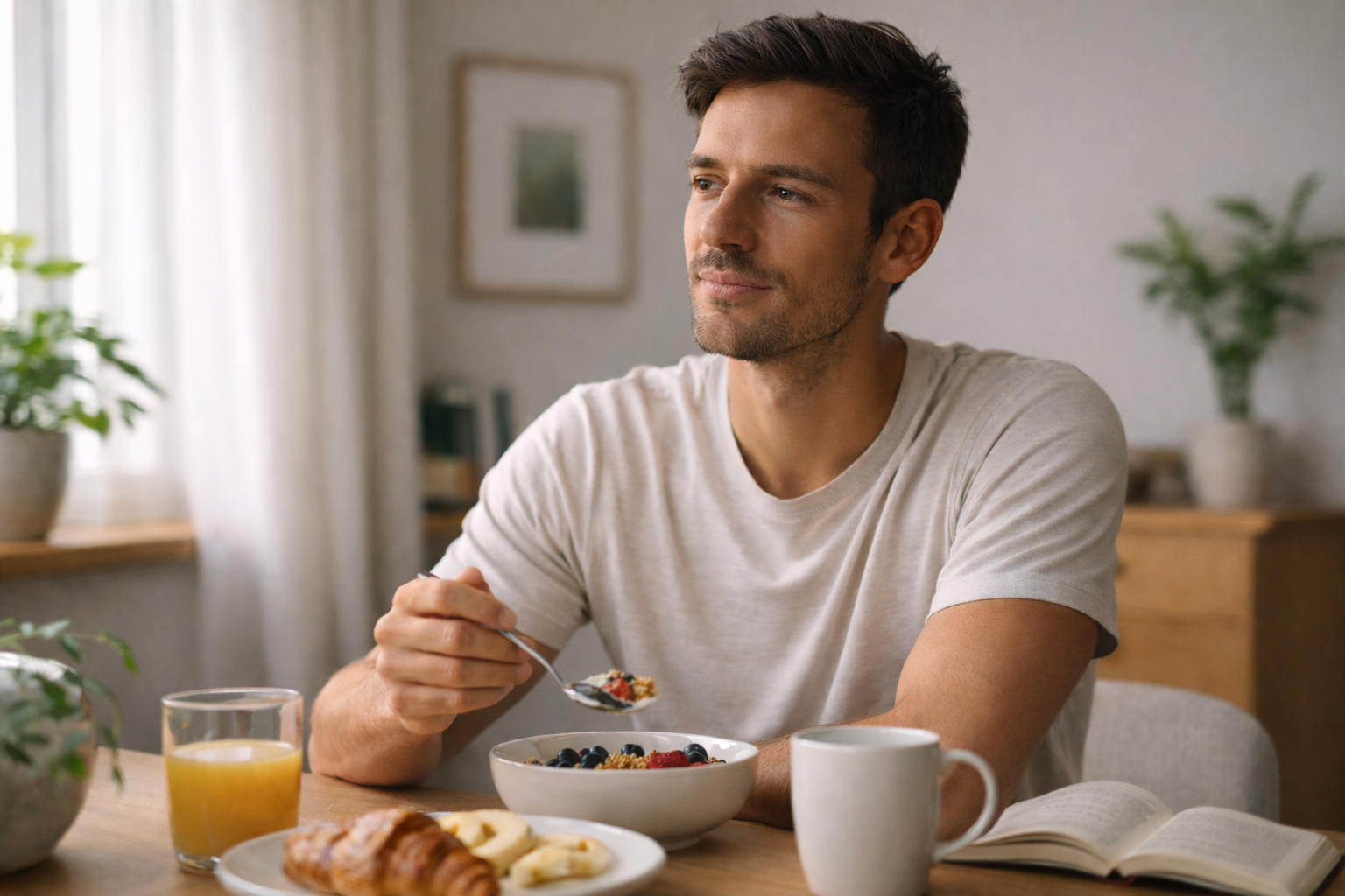 Sem aquela sensação de exaustão logo ao abrir os olhos. Acordando descansado(a), com energia de verdade, começando o dia com disposição física e mental.